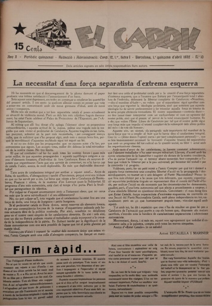 A finals de la dècada de 1910, la Confederació Nacional del Treball, de caràcter llibertari, es consolidà com la central sindical hegemònica. Durant la dictadura de Primo de Rivera, s’alià amb l’independentista Estat Català de Francesc Macià i, l’any 1925, va donar suport actiu a un intent d’alçament per proclamar una República Catalana independent i socialment avançada.