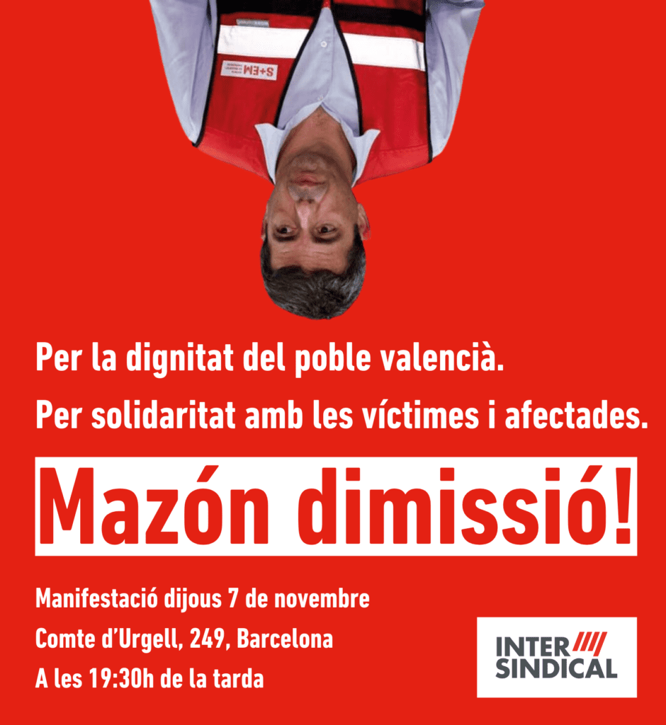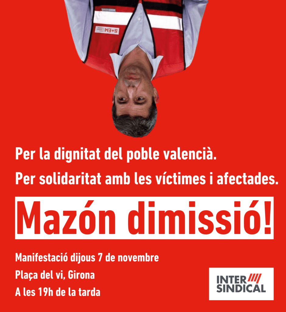 Per la dignitat del poble valencià. Per la solidaritat amb les víctimes i afectades. Mazón Dimissió! Concentracions de denúncia de la negligència aquest dijous 7 de novembre: