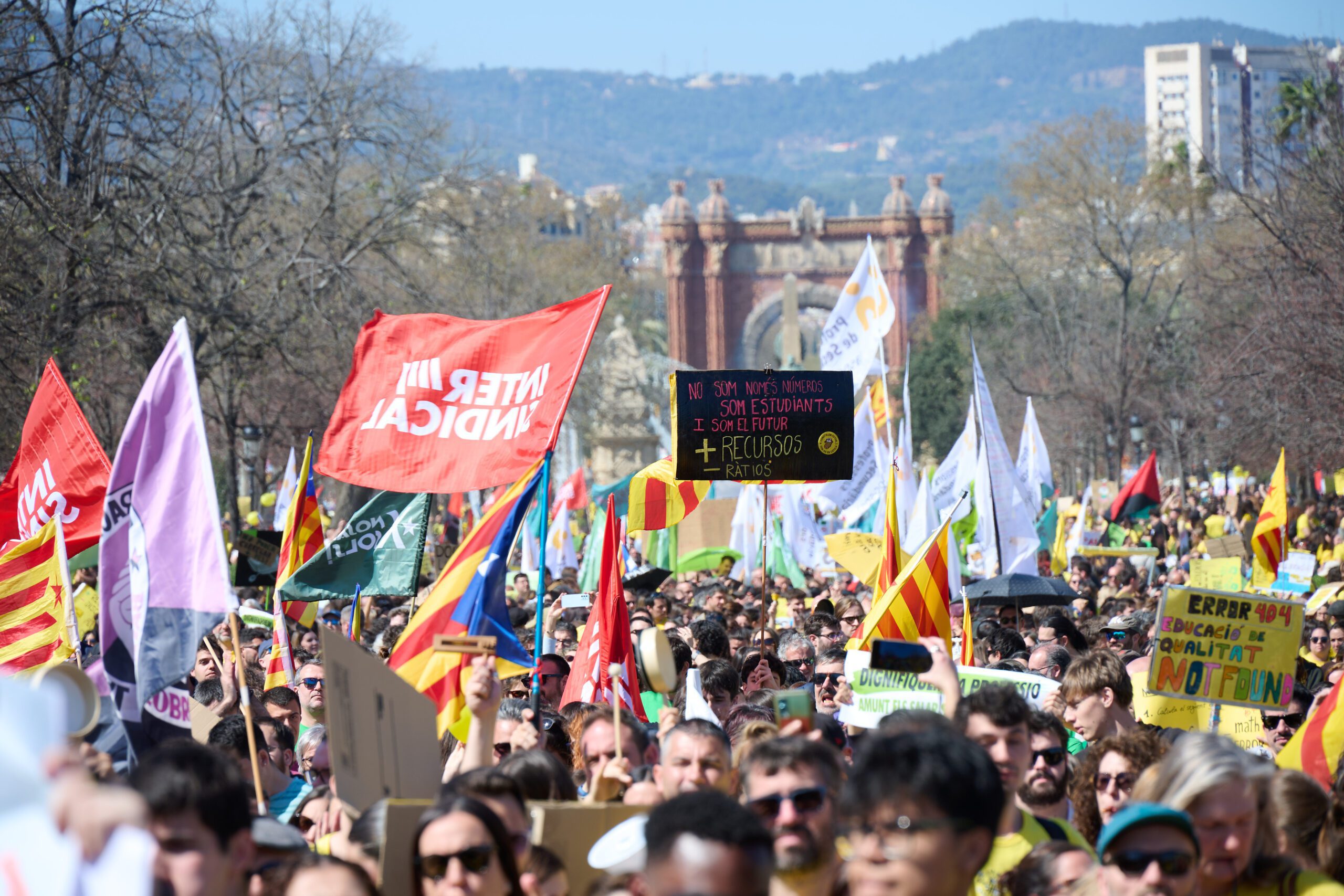 En aquest cas, amb la signatura de CCOO i UGT amb el govern del PSC. Uns acords considerats insuficients per la majoria de sindicats educatius, entre ells La Intersindical, que hi ha tingut un paper destacat en la mobilització.