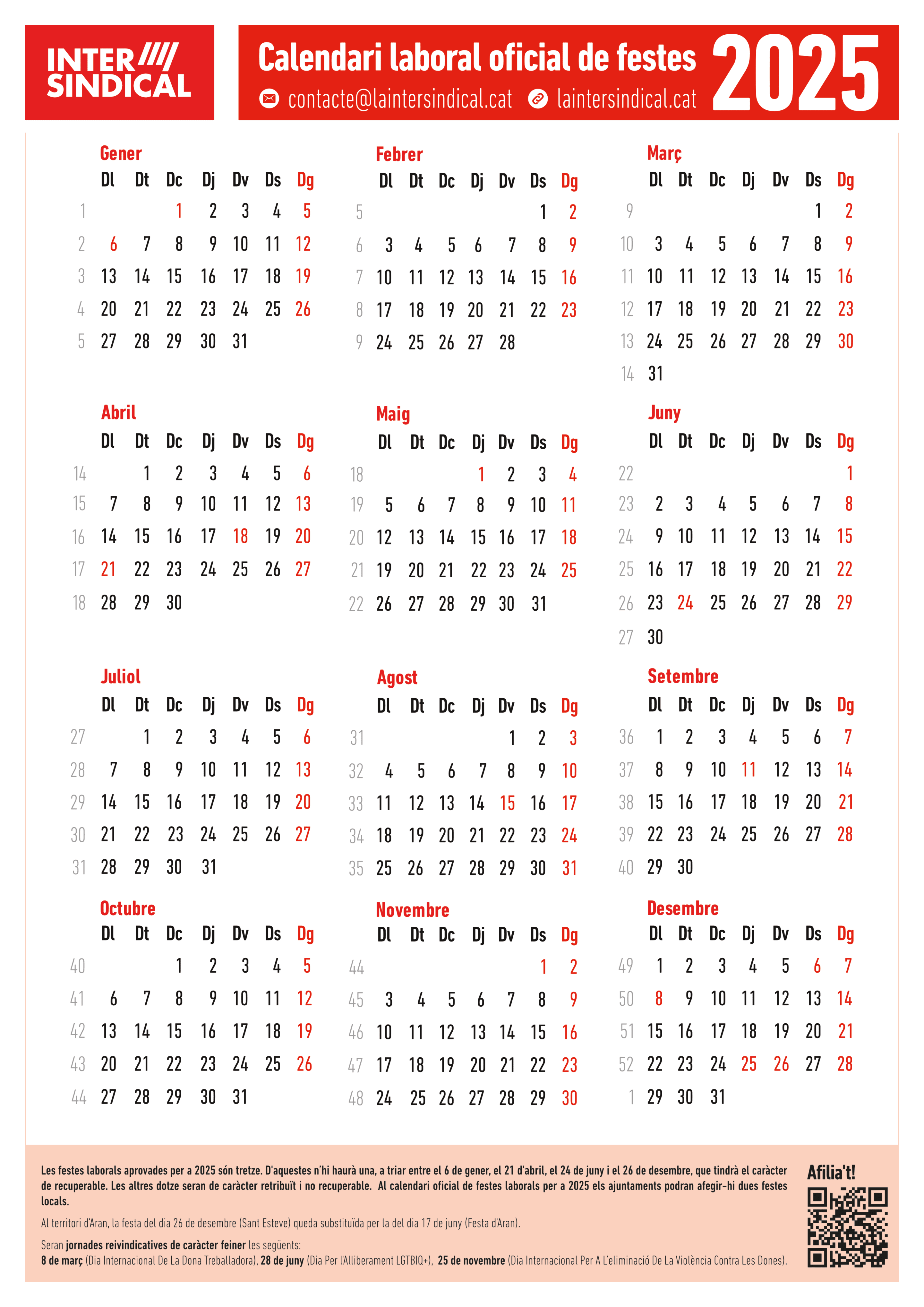 S’ha aprovat el calendari de festes laborals per a 2025, a les quals els ajuntaments poden afegir-hi dues festes locals.