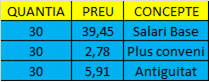 Cos i conceptes de la nòmina, dies treballats, remuneració, salari base, plus conveni…