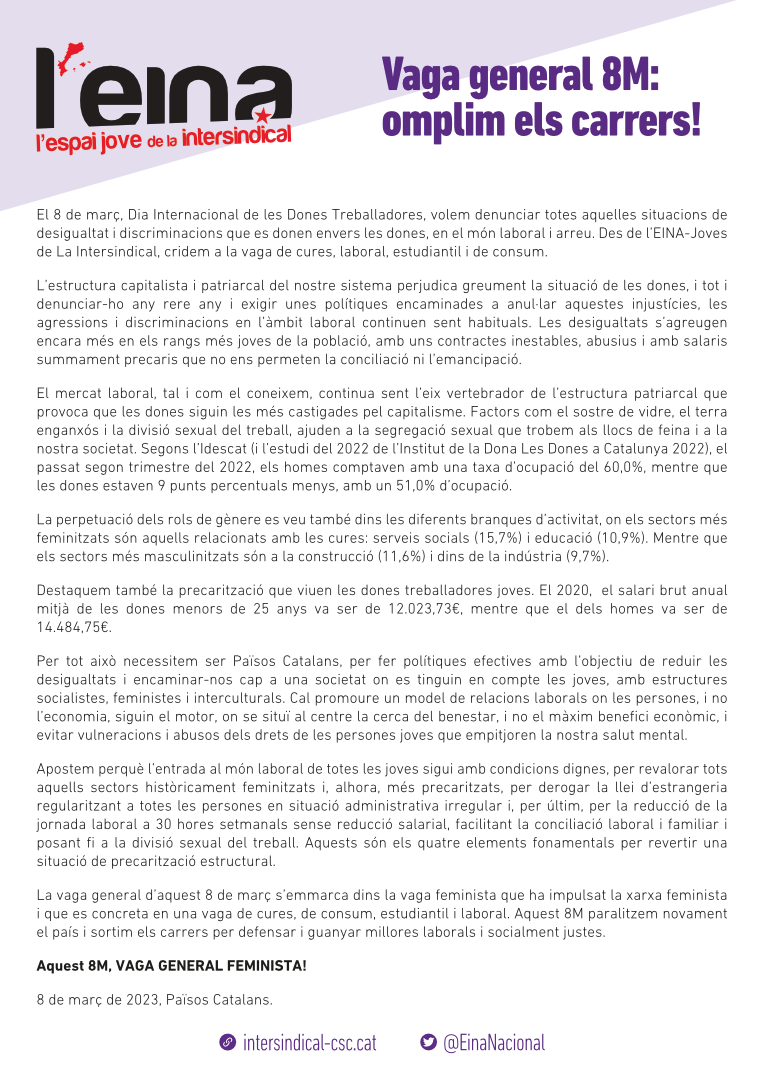 - Manifest de L’Eina (Espai jove de La Intersindical)